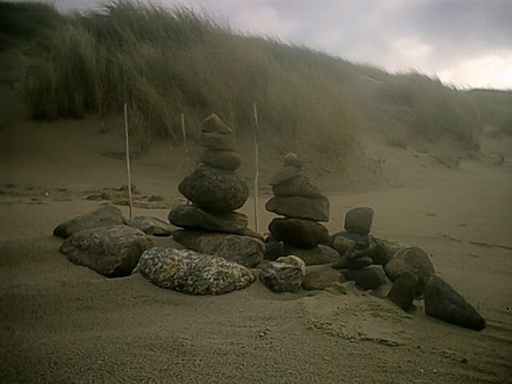 De Cirkels zijn een samenraapsel van vooral stenen, schelpen, veren, stokjes, botjes en ander strandaanbod. Ik werk ook nu weer puur intuïtief, het is een welhaast spiritueel proces en het bouwen verleent me een grote vrijheid en ruimte. Bovenal, ik geniet er enorm van scheppend bezig te zijn op mijn geliefde Texelse strand.